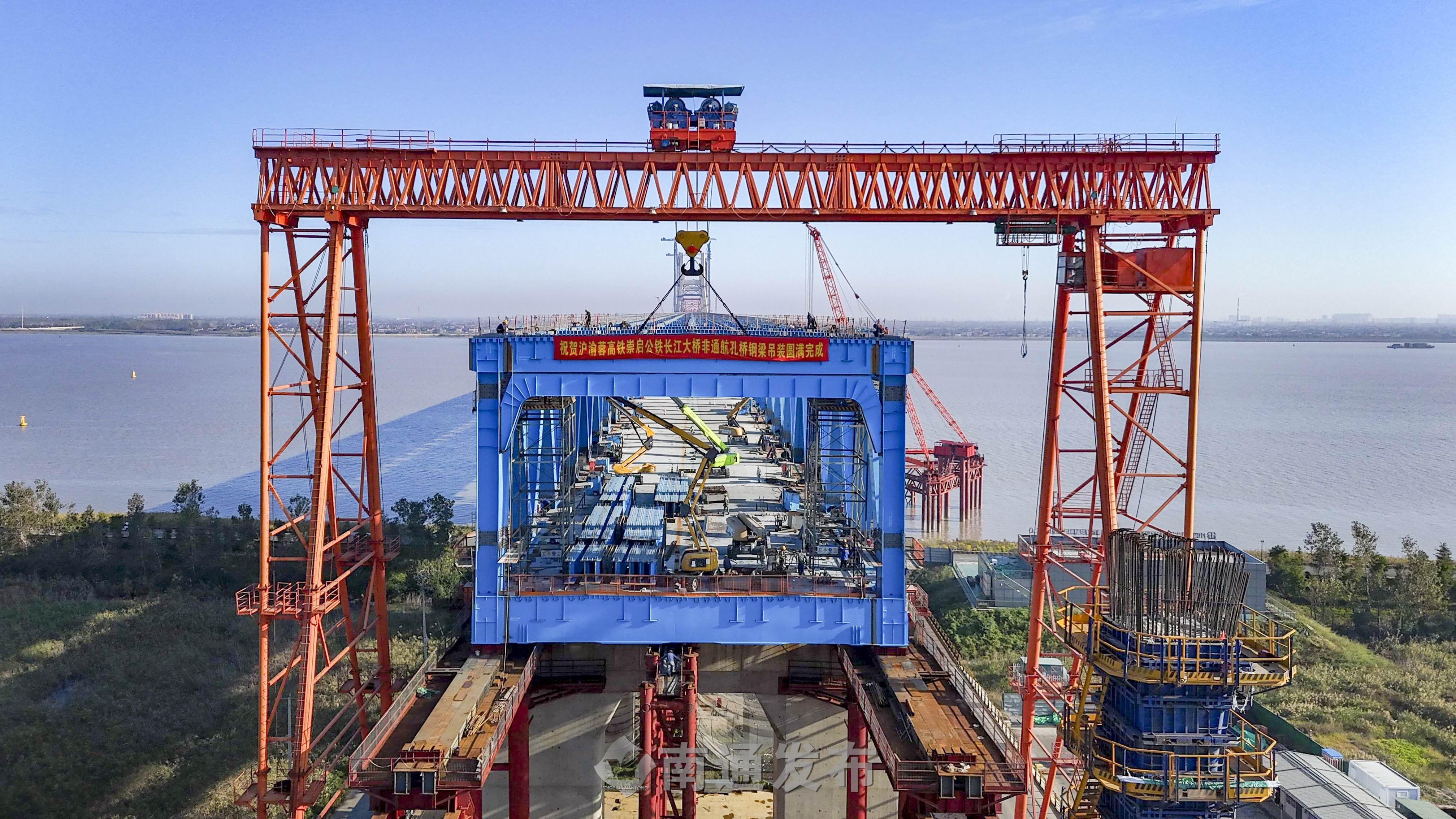 10月31日,一根长21.2米、高1.922米、重34.61吨,编号为A87公路横梁杆件吊装组拼就位,标志着由中铁大桥局承建的新建上海至南京至合肥高速铁路沪宁段站前Ⅴ标崇启公铁长江大桥主桥非通航孔桥钢梁公路横梁吊装组拼全部完成。