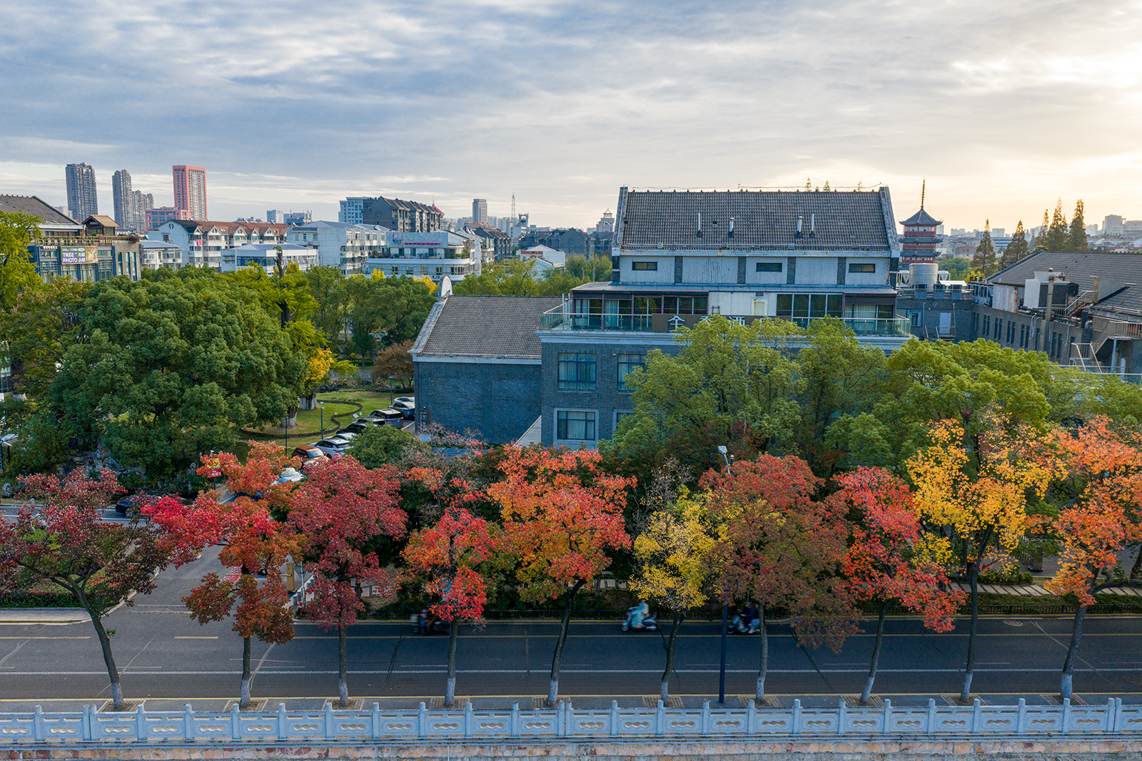 “每年这时候都会特意过来走走,这边的乌桕树特别漂亮,颜色很丰富,拍出来的照片不用修图都很好看。”正在河边散步的市民李女士笑着说。不少摄影爱好者也架起“长枪短炮”,捕捉这限定版的美景。
