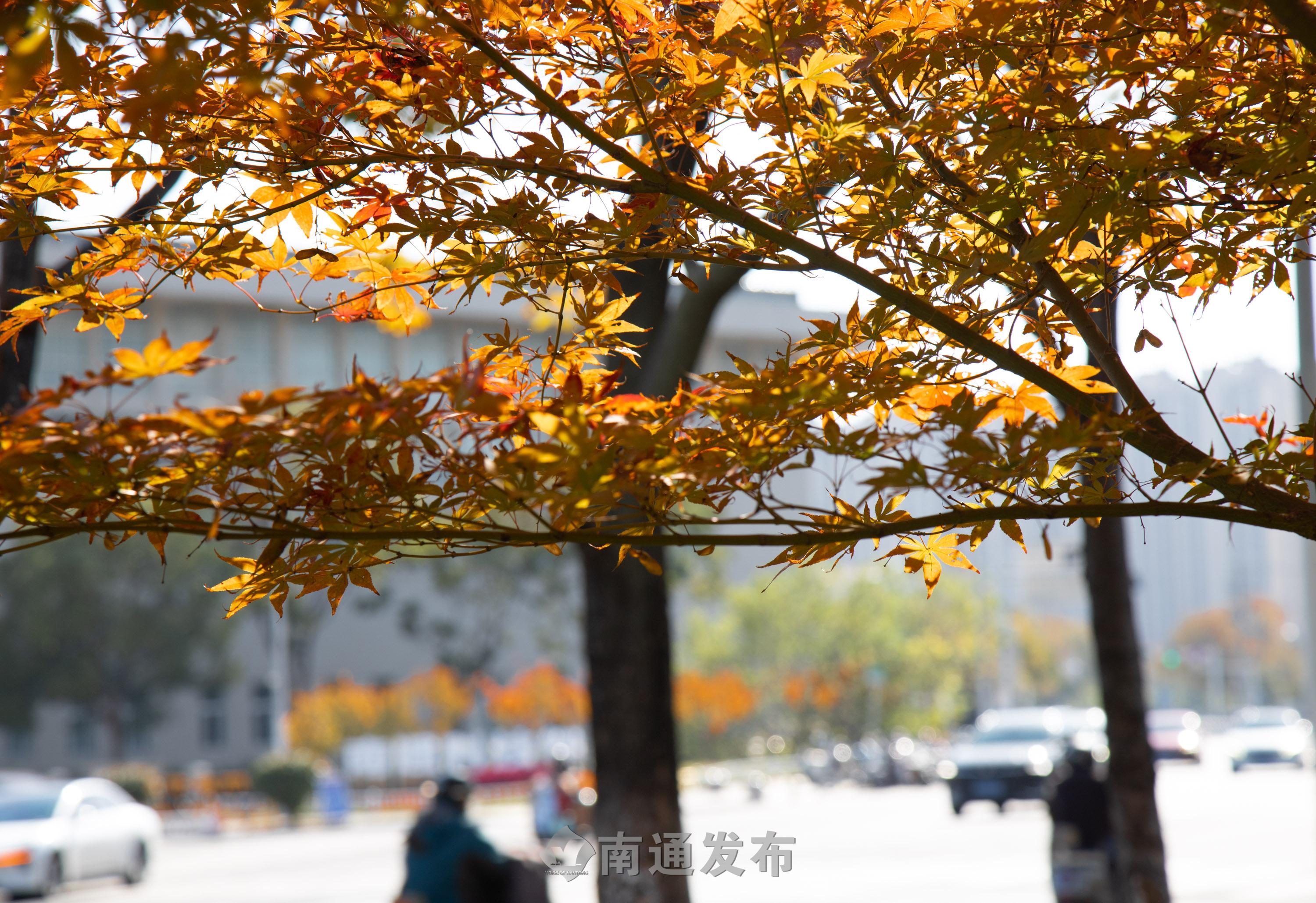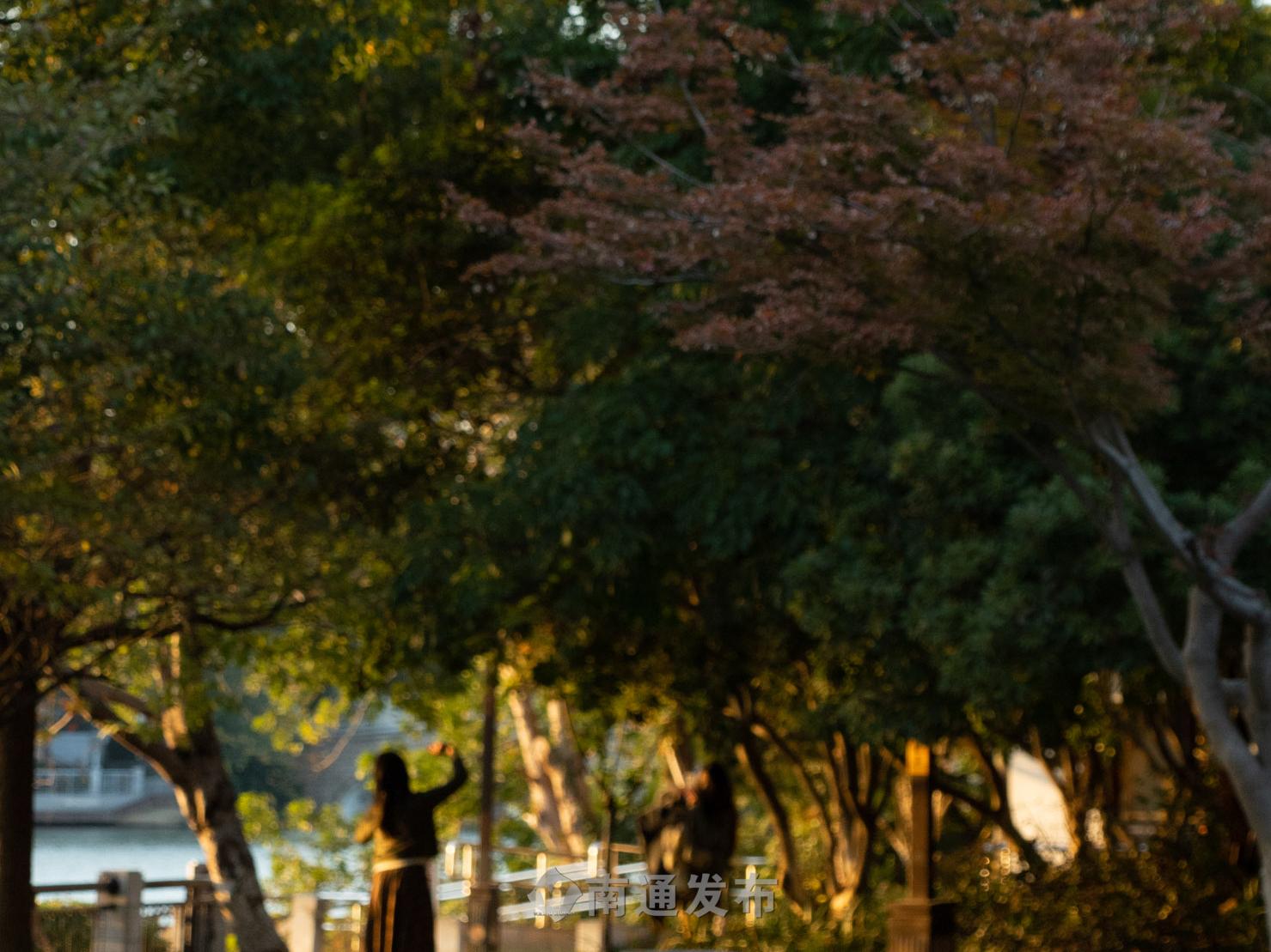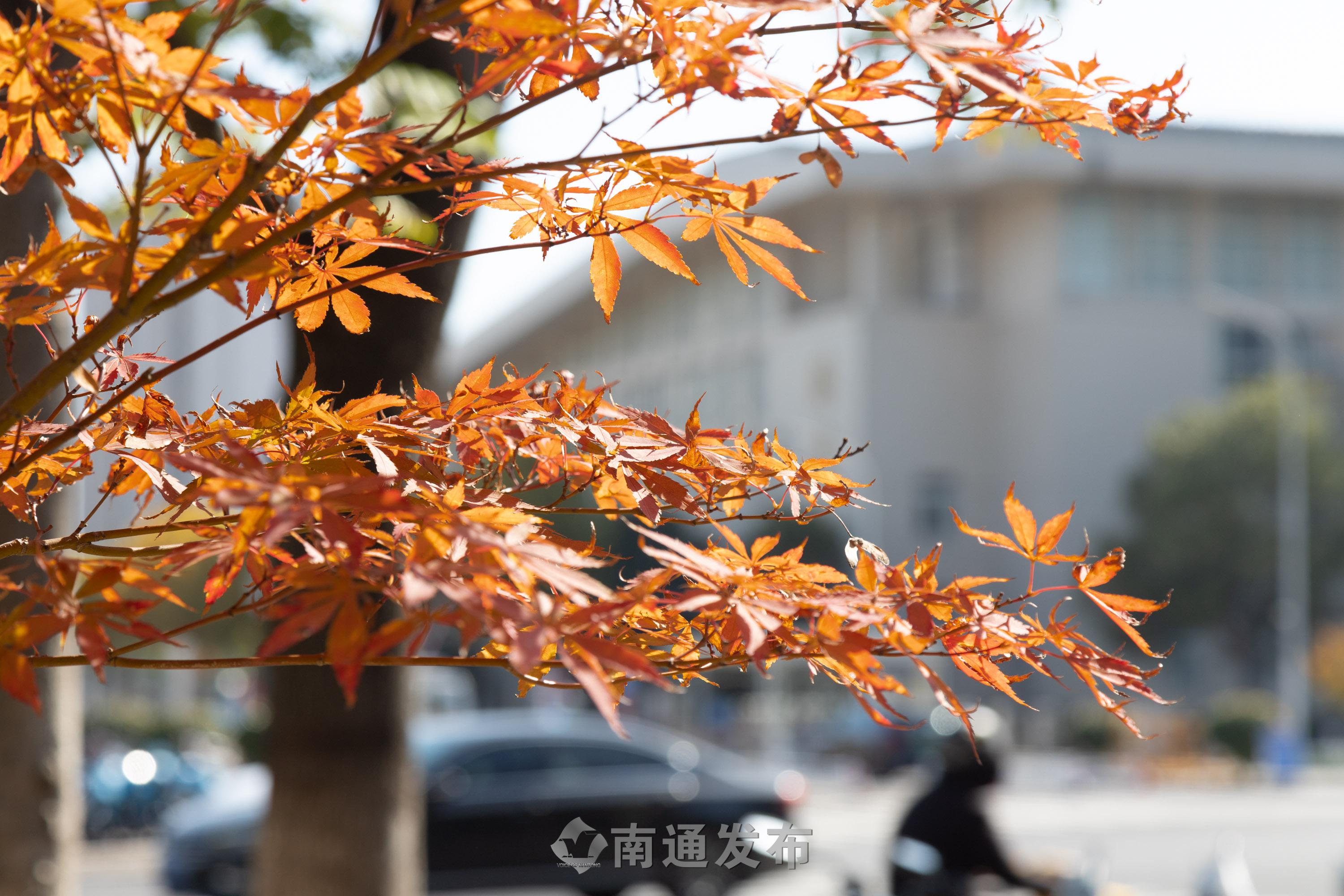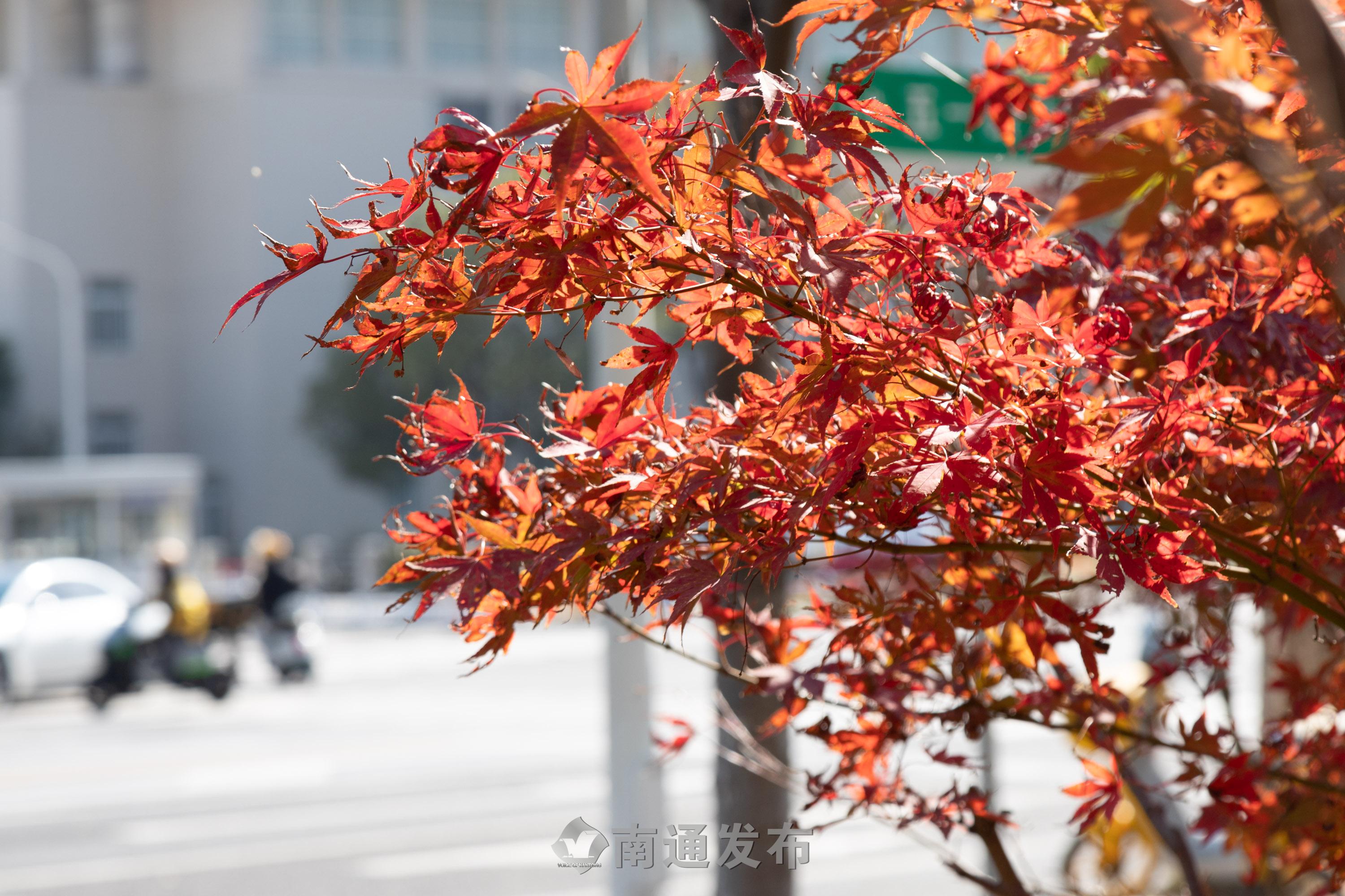 最近,随着气温下降、昼夜温差加大,市区各景观带内的枫树叶开始变红,逐渐进入观赏期。11月19日,记者在濠河景区拍摄到,火红、橙黄、黄绿色的枫叶层层叠叠、由内而外晕染开来,好似一幅唯美的油画,装点通城街头。