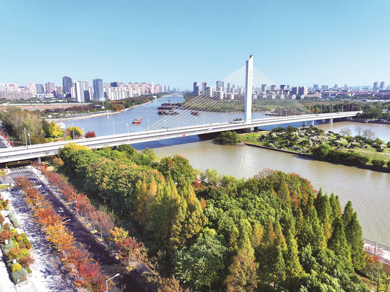 昨天,晴好天气下,崇川区通吕运河绿廊美景一览无余。 记者许丛军