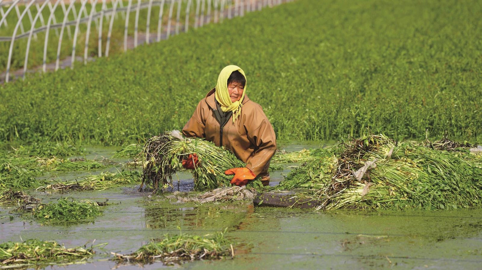 昨天,海安市墩头镇长垎村,菜农正忙着采收大棚模式种植的水芹菜,供应市场。近年来,墩头镇大力发展生态水芹种植,通过优化品种和栽培模式,实现一年多季种植,有效提高了种植户的经济效益。 通讯员周强