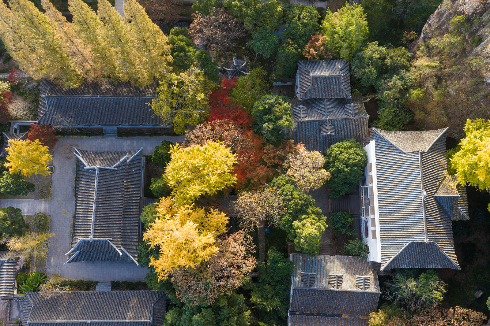 在入山之门处,金黄的银杏与古朴的建筑相得益彰,为游客开启一段美妙的赏秋之旅。法乳堂前,古老的银杏树枝干遒劲,金黄的叶子在阳光下熠熠生辉,为这座历史建筑增添了几分庄严与神秘。北麓园的赵绘沈绣楼前,临山壁而起的建筑与金黄的银杏构成了一幅和谐的画面。回首望去,香炉峰下“五山拱北”四个摩崖大字在银杏枝叶的掩映下格外巍然耀眼。广教寺外的银杏更是不能错过的景观。古老的寺院在金黄的银杏映衬下,更显静谧与庄严,漫步其间,仿佛能听到历史的回响。