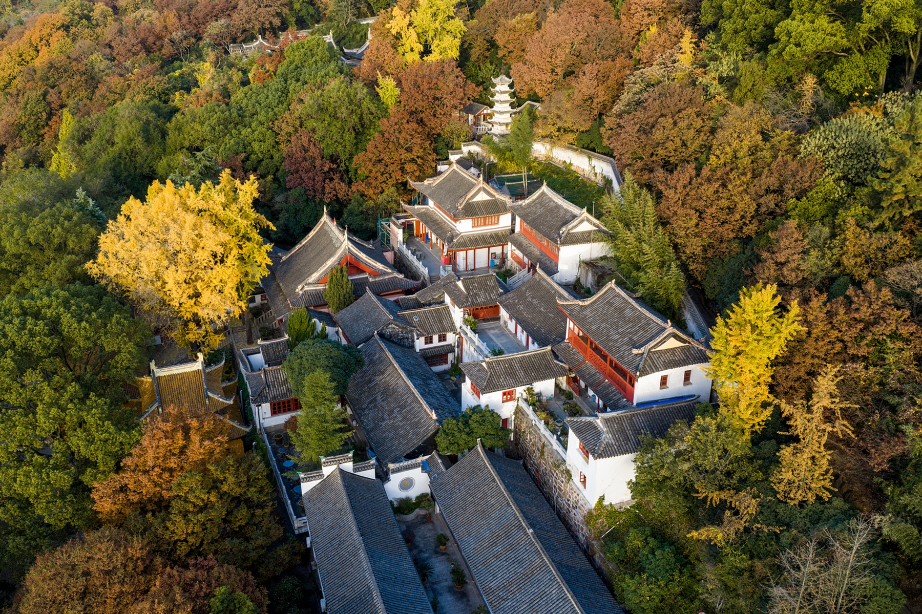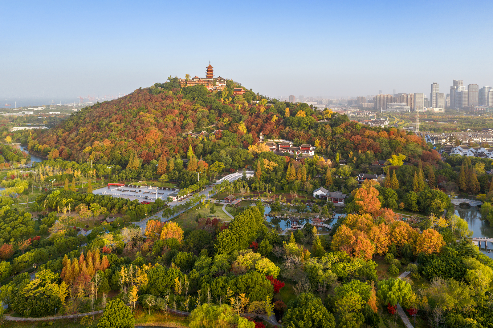 “山明水净夜来霜,数树深红出浅黄”,狼山景区迎来一年中最绚烂季节。