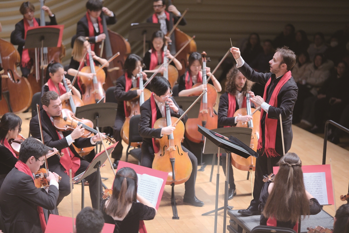 4日,南通大学“2026新年音乐会”在南通大剧院奏响,本次音乐会由南通大学国际交响乐团和南通大学星辰合唱团联袂呈现,乐团在首席指挥——意大利指挥家罗伯特·菲奥雷的带领下演奏了多首中外名曲。 记者徐培钦