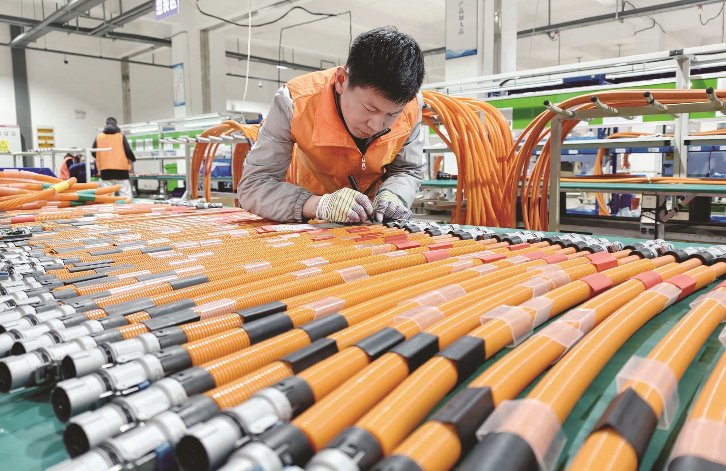 昨天,工人在位于海安高新区的恩达通用设备集团有限公司车间里,赶制新能源汽车充电桩订单。近年来,海安积极抢占新能源及智能网联汽车产业的新增长极,加快传统汽车及零部件产业向智能化、电动化转型。 顾华夏摄