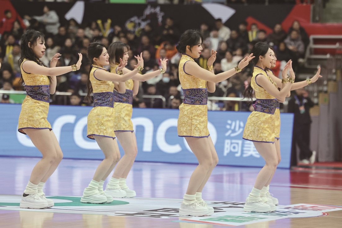 篮球拉拉队在比赛间歇表演。 记者徐培钦
