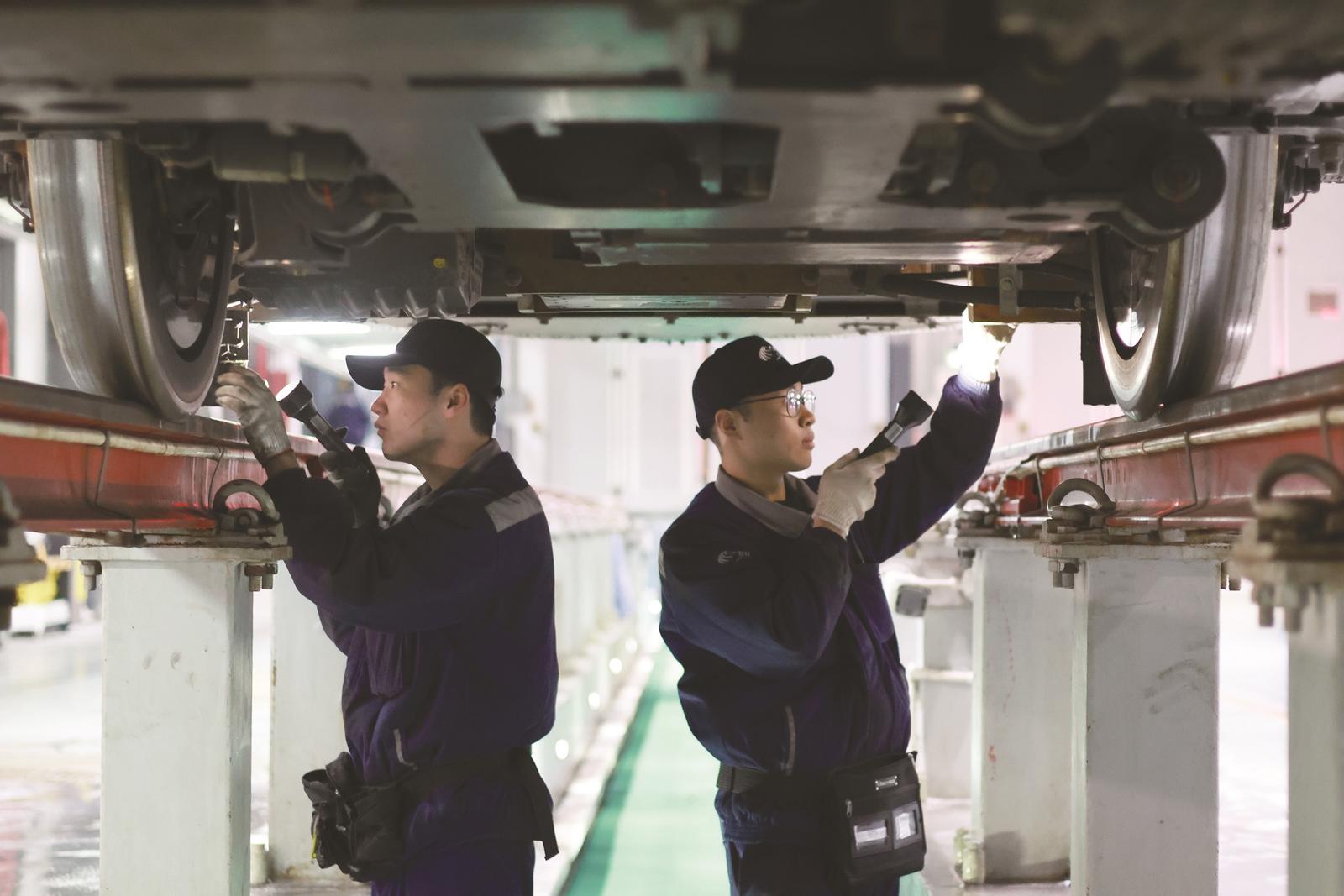 “春运40天,必须保证每列动车组的质量状态都处于最佳。”二级修班组工长罗炎话语坚定。今年是他从事动车检修工作的第十二个年头。十二载新春,他几乎都在检修库度过。往年春节,动车组二级检修工作会安排在假期前后开展,而今年春运客流预计持续高位,为保障运力足额供给,罗炎将带领班组率先开启春节检修模式,从高压系统到走行部件,从客服设施到辅助电气系统,他带领班组成员按标作业、逐项排查,不放过任何一处细微隐患,“列车安全,就是我们送给旅客最好的新春祝福”。