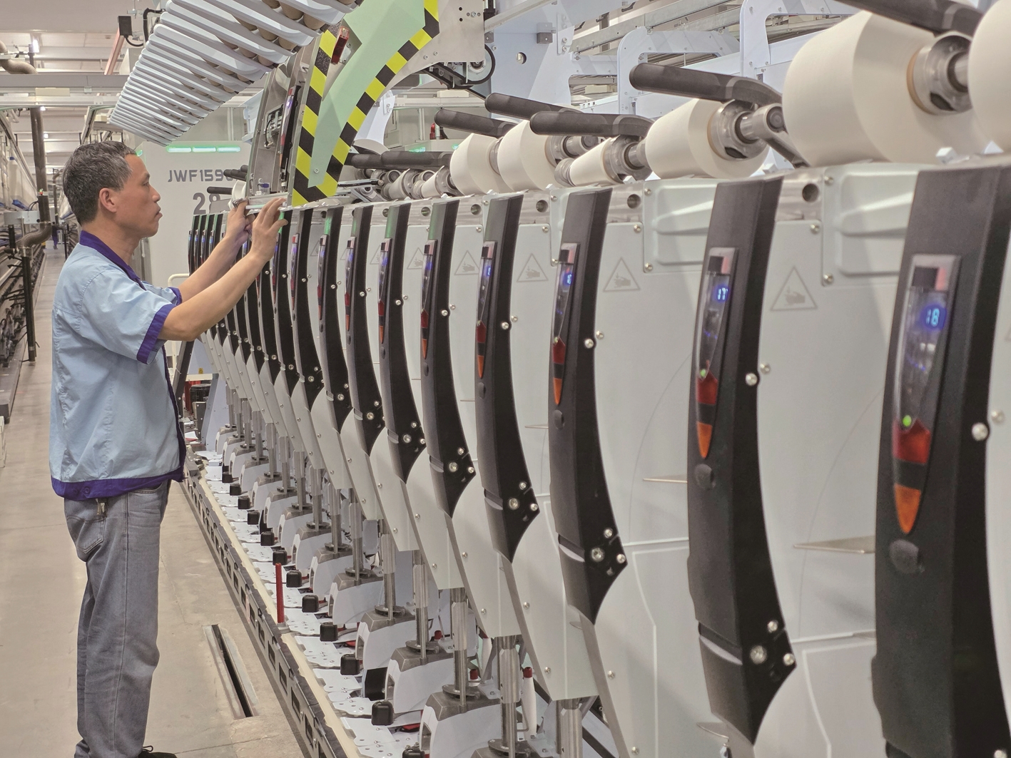 昨天,位于崇川区的江苏大生集团碳中和智慧纺纱工厂,节后生产一片繁忙。该厂是中国首个碳中和智慧纺纱工厂,也是国家卓越级智能工厂、纺织行业碳中和工厂标准试点企业。碳中和智慧纺纱工厂通过数字化、智能化、物联网等先进技术集成,形成“智能+绿色”相融共生的发展形态。 记者许丛军