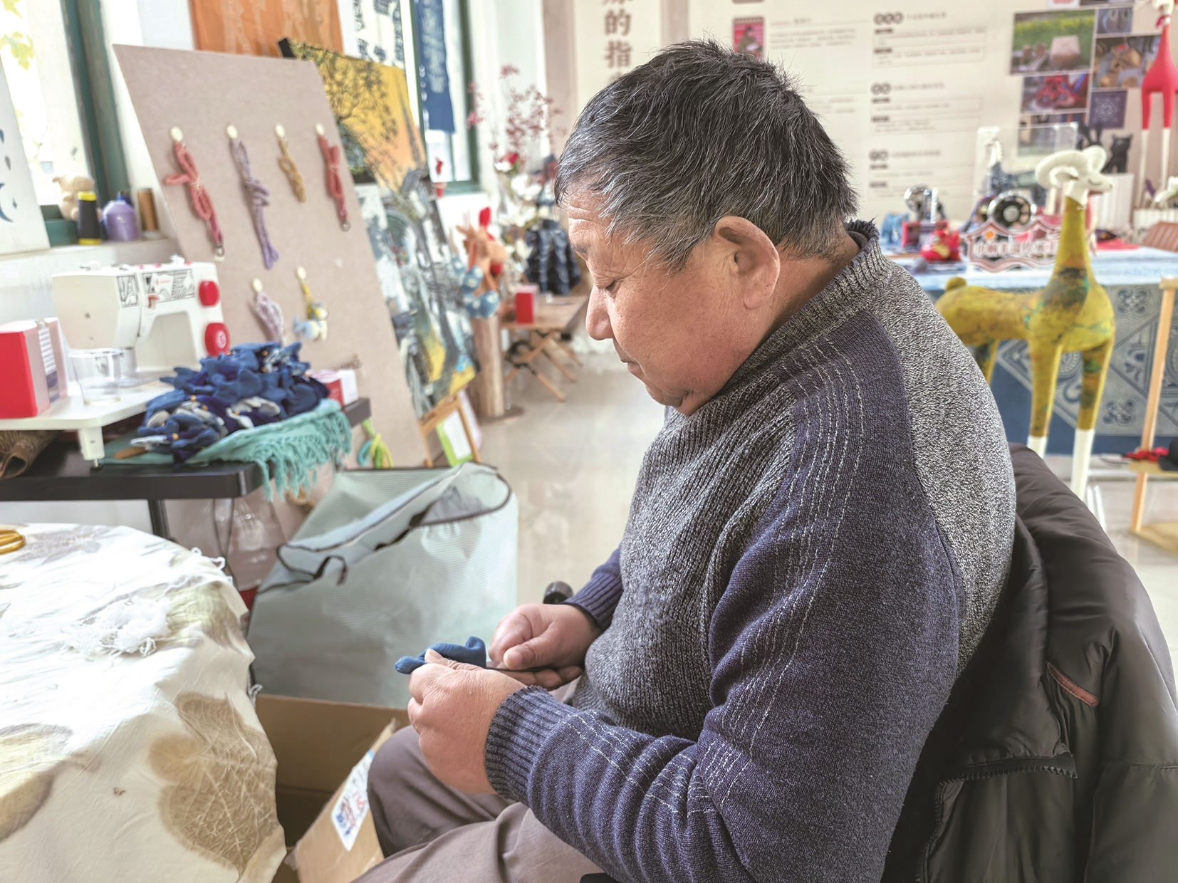 工人正在制作土布文创。