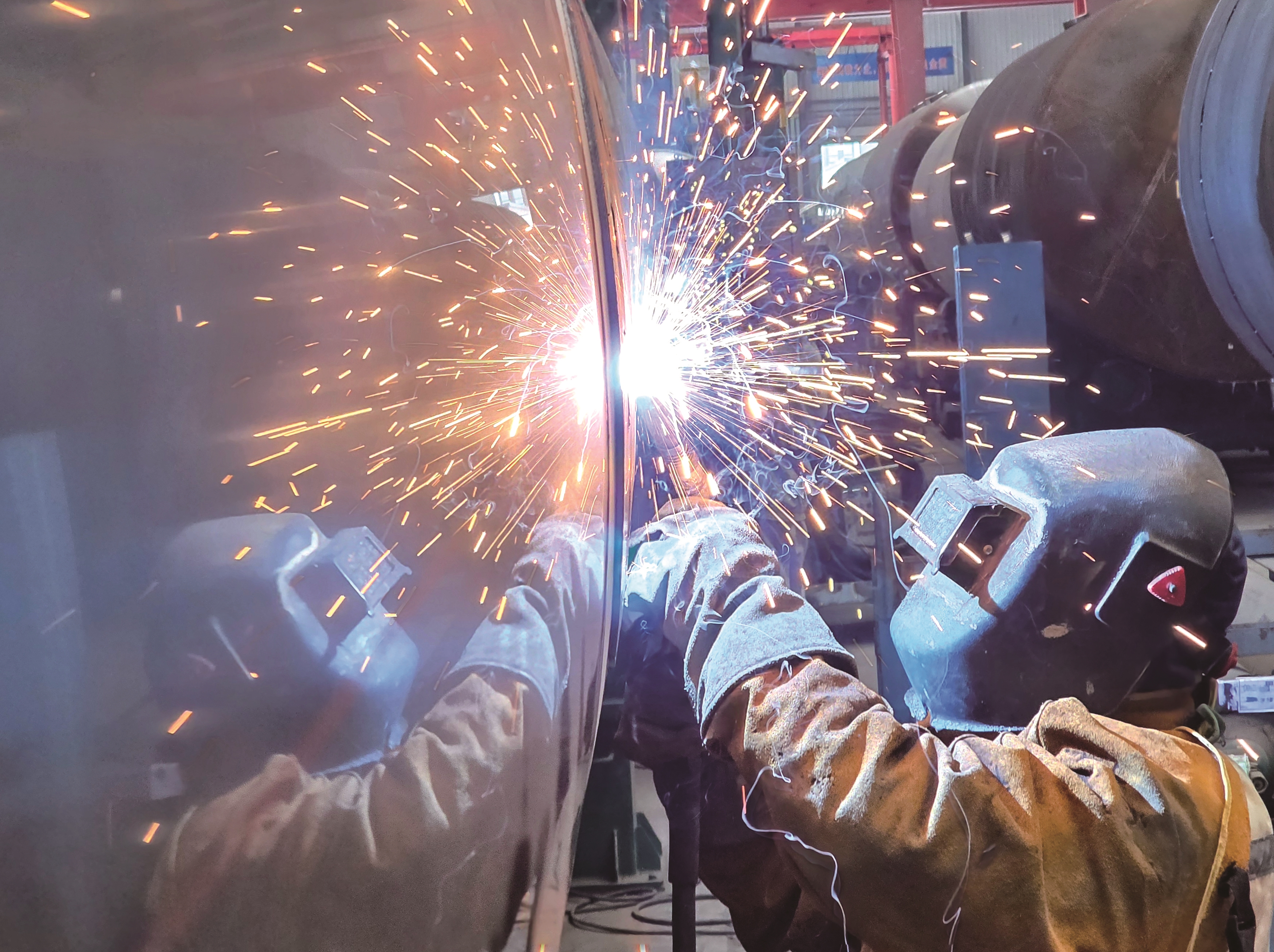 昨天,工人在位于崇川区港闸经济开发区的南通中集能源装备低温制造一车间忙碌赶制国内外订单产品。