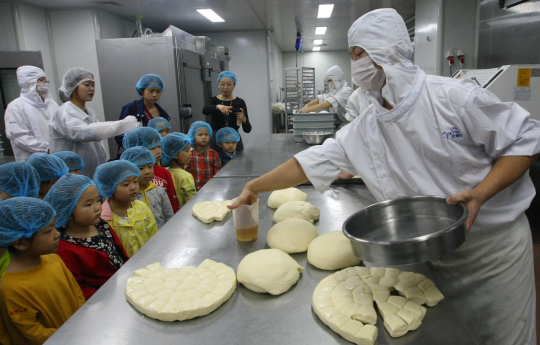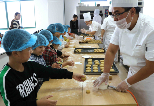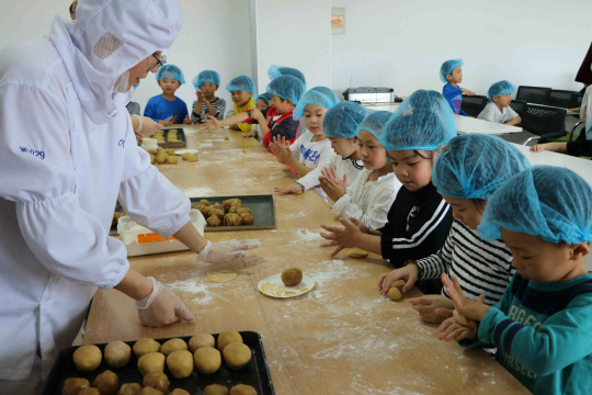9月28日,港闸区秦灶街道民安花苑社区举办“小小糕点师”活动。志愿者组织北城幼儿园的孩子走进辖区内的食品厂,大家在面点师的指导下擀皮、捏馅、压模,在“月饼课堂”上制作出一块块月饼,感受到了劳动的乐趣和民俗的魅力。记者 徐培钦